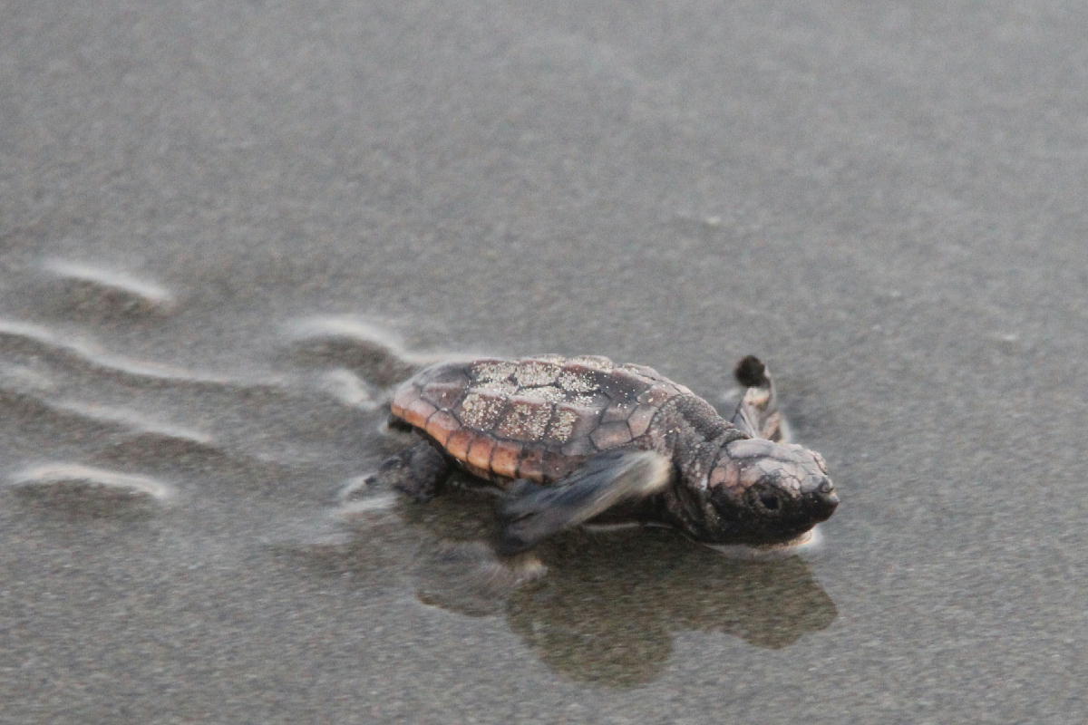 海へ泳ぎ出す直前の子ガメ
