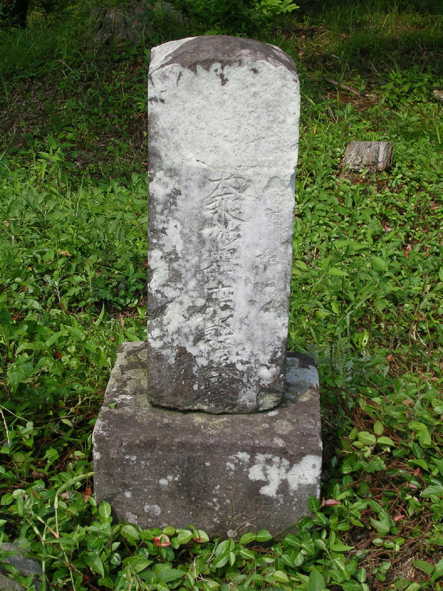 また、坪谷からさらに山深い越表の中水流にも廻国供養塔があります。こちらは文政12(1829)年に建立されたものですが、劣化が進み、判読できない文字も多くなっています。