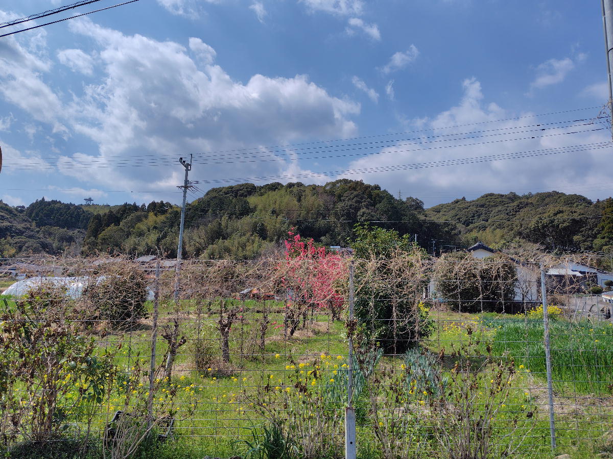 祠のうしろには谷を利用した迫田があって、昔ながらの農村風景を醸し出していて、その北側には地元で「城(じょう)」と呼ばれている山があります。