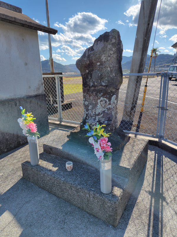 財光寺比良地区にある比良コミュニティセンターのよこには、地元の人たちから「オコシンさん」と呼ばれている古い石碑(庚申塔)が建っています。