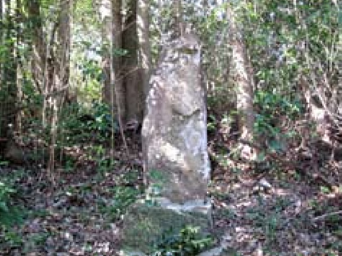 今回、訪れたのは、坪谷川南岸にある上野原地区で、仲崎・多武ノ木方面へ通じる市道の脇に、高さ150センチメートルほどの石塔が建っています。