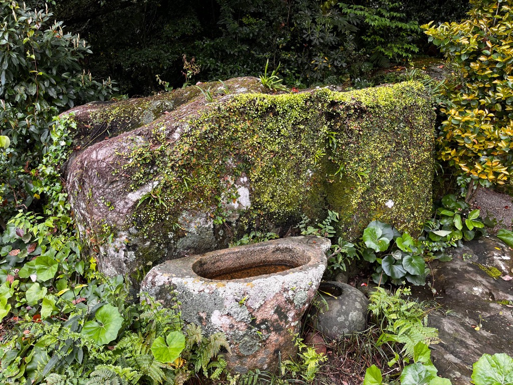 市道に面した鳥居を潜り境内に入ると向って右側に神武天皇の腰掛岩があり、厳かな雰囲気を漂わせています。