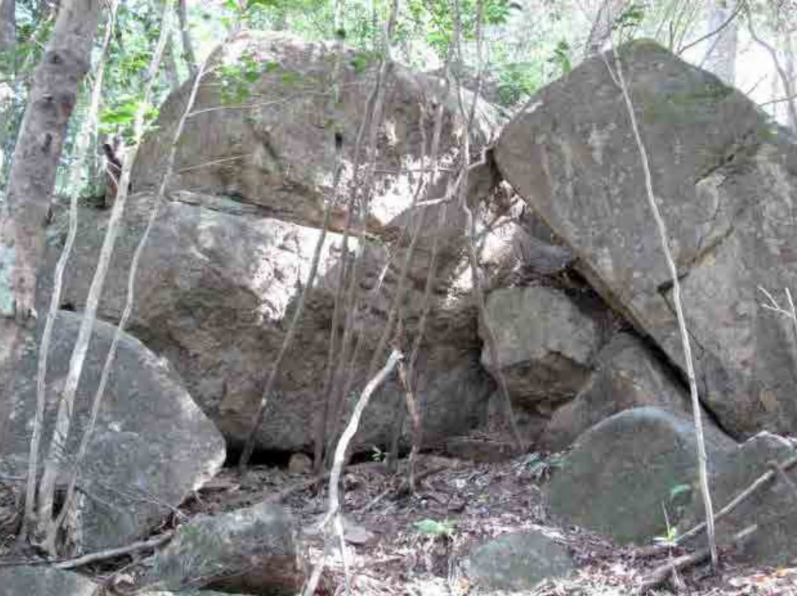 ところで、天皇が休憩された場所としては、出口に鎮座するお稲荷様の山が最も有力な候補地で、じつは当地には県内でも屈指の巨石群が所在しています。これまでこのコーナーでは神武天皇の東征にまつわる市内各地の巨石を紹介してきましたが、景行天皇の由緒地にも巨石が存在しているのです。