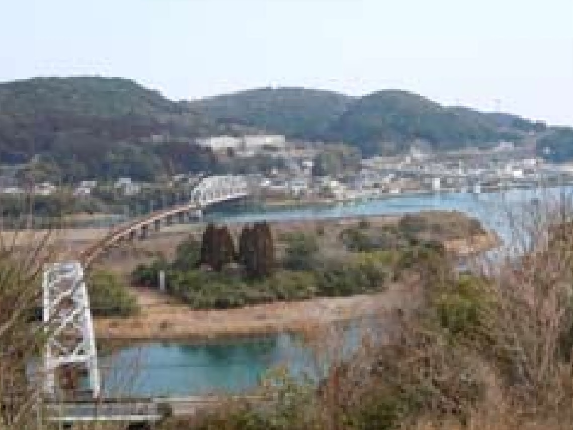 さて、美々津の耳川河口にある中ノ島は、上流から運ばれてきた土砂が堆積してできたものですが、ここは美しい弁天様を乗せた鯨が姿を変えていると伝えられています。